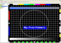 Tento obrazec (16:9) v základní sadě obrazců sice nenaleznete, ale návrhářům ukazuje možnost kombinace základních komponent s bitmapovými prvky. Rozlišení základních komponent není omezeno, protože se obrazec přepočítává podle aktuálního nastavení. Rozlišení bitmapových prvků je pevně dáno. Pokud je příliš nízké, bude mít i v obrazci nízkou kvalitu. Pro analogové systémy postačuje rozlišení SDTV, které zároveň šetří paměť pro další obrazce. Bitmapy ve vysokém rozlišení jsou pak vhodné zejména pro digitální soustavy s vyšším rozlišením, kde jemné detaily zvláště vynikají.